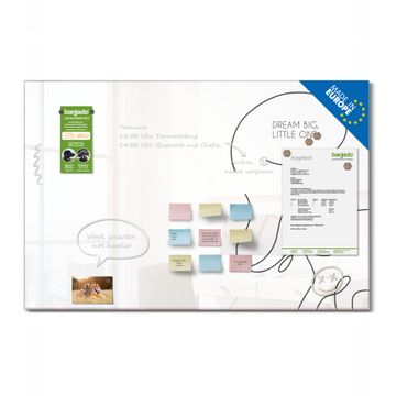 Auf der glatten Glasoberfläche lassen sich Termine, Rezepte oder Notizen ganz einfach mit Kreidestiften festhalten und rückstandslos entfernen. Starke Neodym-Magnete halten Ihre wichtigsten Erinnerungen sicher an Ort und Stelle. So entsteht Ihre ganz persönliche Ideenwand - jeden Tag neu.