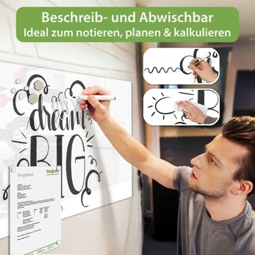 Die banjado Glas Magnettafel mit dem Motiv Motiv Traum Groß verbindet Funktionalität mit Stil. Sie ersetzt das Zettelchaos durch klare Strukturen und bringt dabei eine warme, natürliche Atmosphäre in Ihr Zuhause. Ob im Büro, in der Küche oder im Eingangsbereich - dieses Design-Board zieht Blicke an und sorgt für Ordnung mit Charakter.