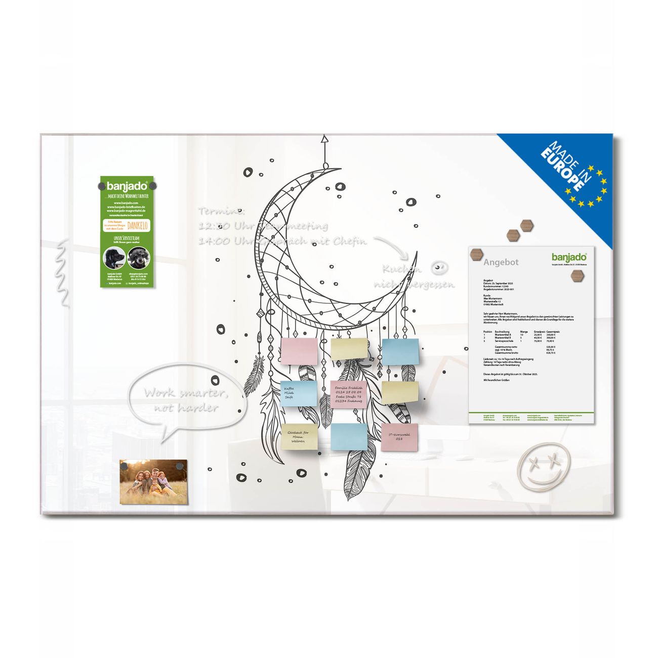 Die banjado Glas Magnettafel mit dem Motiv Motiv Traumfänger 2 verbindet Funktionalität mit Stil. Sie ersetzt das Zettelchaos durch klare Strukturen und bringt dabei eine warme, natürliche Atmosphäre in Ihr Zuhause. Ob im Büro, in der Küche oder im Eingangsbereich - dieses Design-Board zieht Blicke an und sorgt für Ordnung mit Charakter.