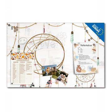 Die banjado Glas Magnettafel mit dem Motiv Motiv Traumfänger Eleganz verbindet Funktionalität mit Stil. Sie ersetzt das Zettelchaos durch klare Strukturen und bringt dabei eine warme, natürliche Atmosphäre in Ihr Zuhause. Ob im Büro, in der Küche oder im Eingangsbereich - dieses Design-Board zieht Blicke an und sorgt für Ordnung mit Charakter.
