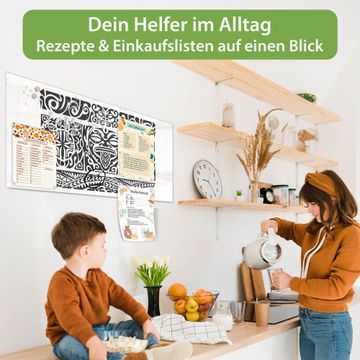 Auf der glatten Glasoberfläche lassen sich Termine, Rezepte oder Notizen ganz einfach mit Kreidestiften festhalten und rückstandslos entfernen. Starke Neodym-Magnete halten Ihre wichtigsten Erinnerungen sicher an Ort und Stelle. So entsteht Ihre ganz persönliche Ideenwand - jeden Tag neu.