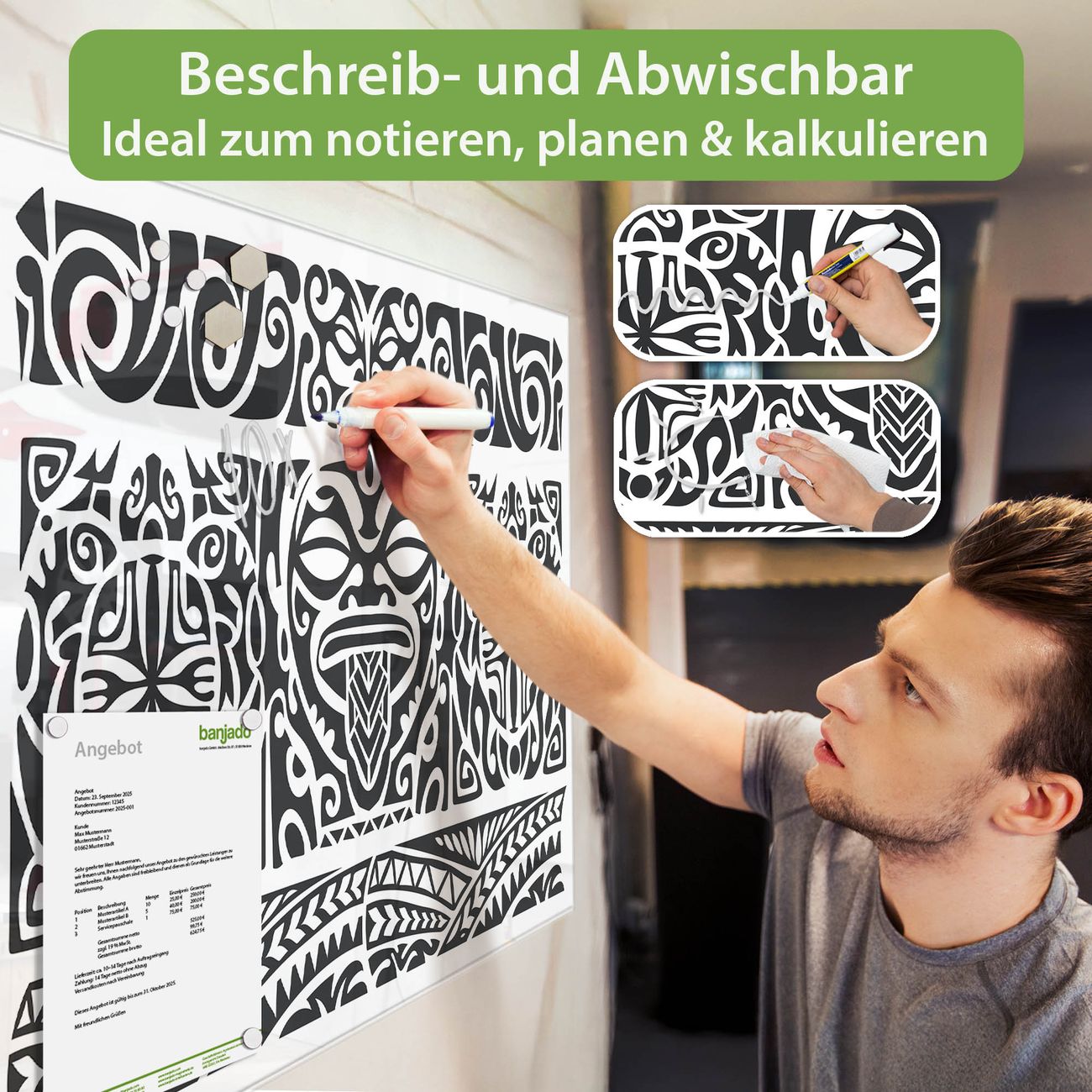 Glas Magnettafel im Querformat Motiv Tribal Muster