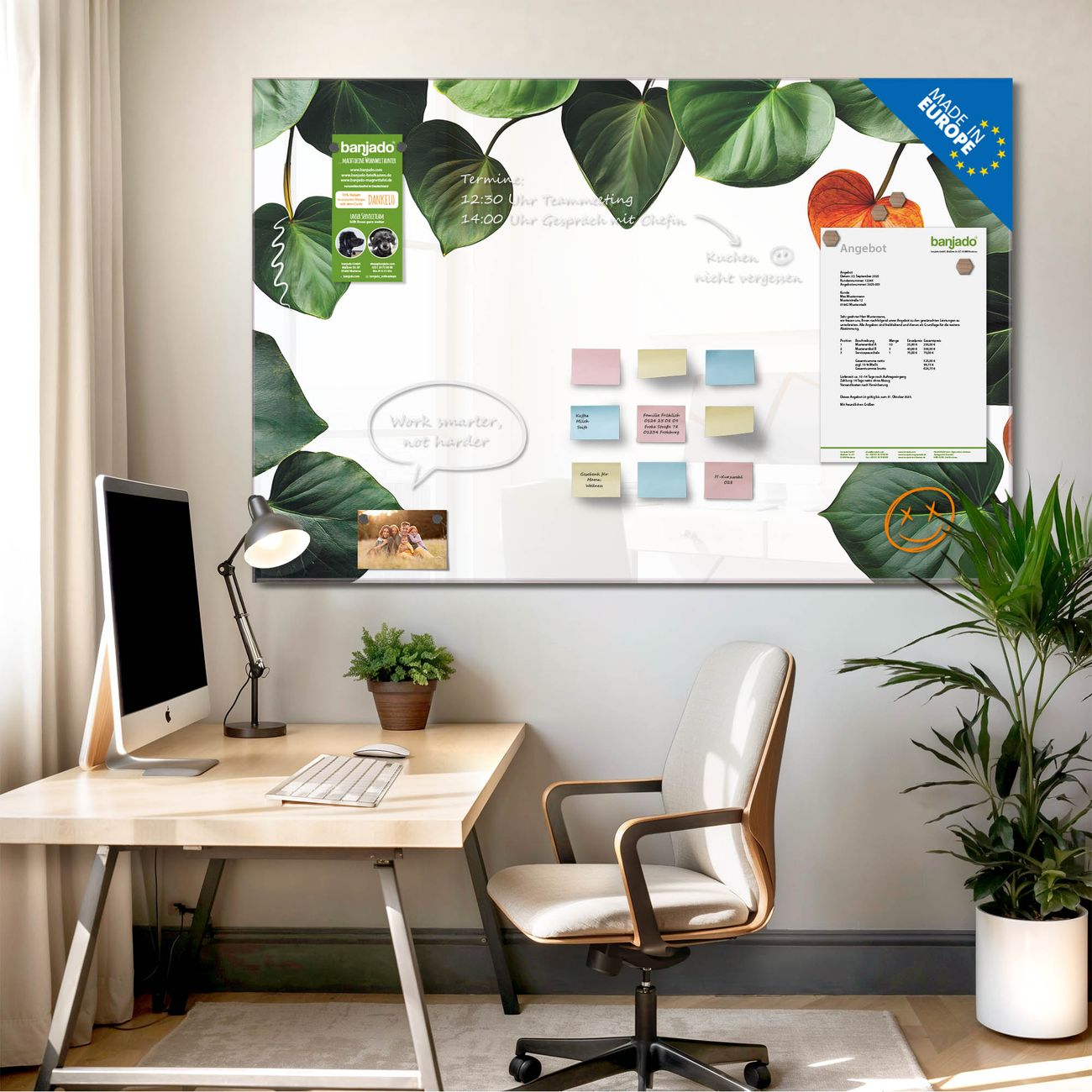 Die banjado Glas Magnettafel mit dem Motiv Motiv Tropische Blütenpracht verbindet Funktionalität mit Stil. Sie ersetzt das Zettelchaos durch klare Strukturen und bringt dabei eine warme, natürliche Atmosphäre in Ihr Zuhause. Ob im Büro, in der Küche oder im Eingangsbereich - dieses Design-Board zieht Blicke an und sorgt für Ordnung mit Charakter.