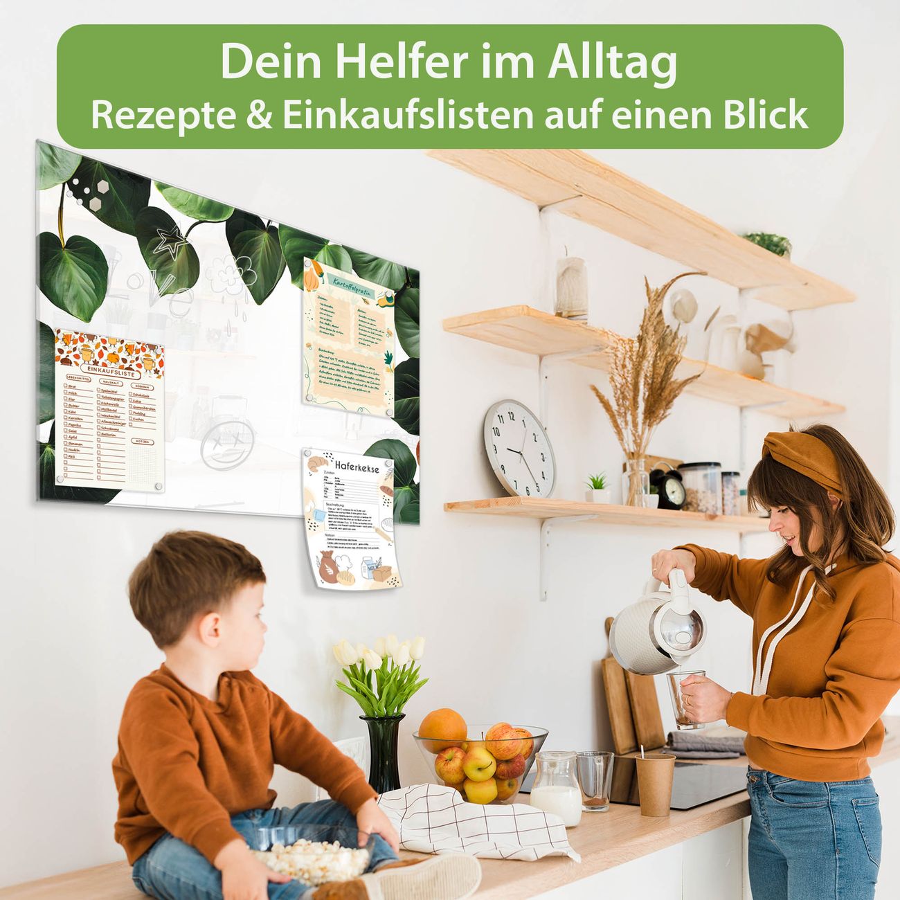 Auf der glatten Glasoberfläche lassen sich Termine, Rezepte oder Notizen ganz einfach mit Kreidestiften festhalten und rückstandslos entfernen. Starke Neodym-Magnete halten Ihre wichtigsten Erinnerungen sicher an Ort und Stelle. So entsteht Ihre ganz persönliche Ideenwand - jeden Tag neu.