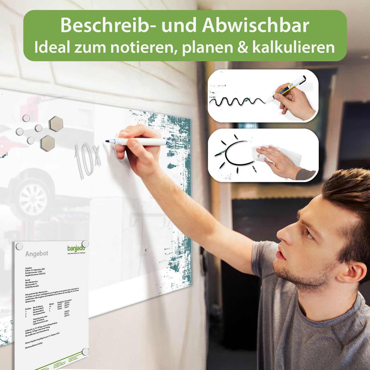 Bitte beachten Sie, dass ausschliessliche spezielle Magnete an der Glastafel haften. Wir empfehlen banjado Neodym Magnete, diese sind durch uns auf Wirksamkeit geprüft.