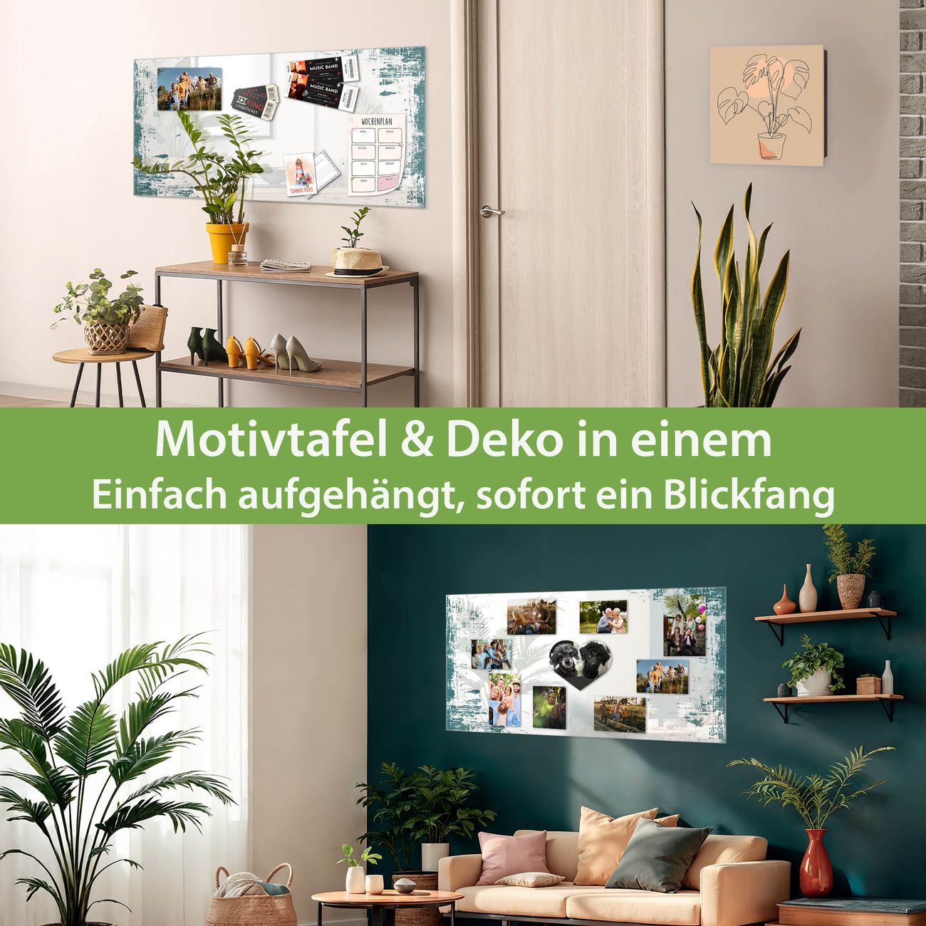 Ein Stück Design, das Ihren Alltag organisiert. Schreiben, heften, inspirieren - alles an einem Ort. Qualität, die man spürt. Montage leicht gemacht. Handwerk mit Herz - veredelt in Sachsen. Einzigartiges Design mit Motiv Motiv Türkis-Weiße Rahmenstruktur Beschreibbare Glasoberfläche, leicht zu reinigen Starke Magnetkraft durch Stahlrückwand Inklusive 4 Neodym-Magneten Flexible Montageoptionen Handveredelt in Sachsen - Qualität, die bleibt