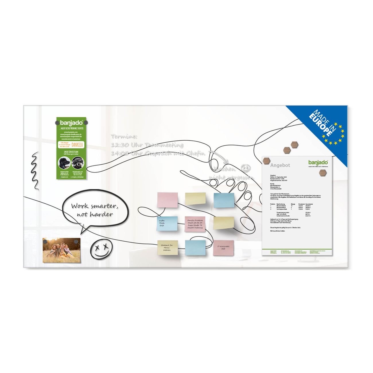 Jede Glas Magnettafel wird in unserer Werkstatt von Hand gefertigt und sorgfältig geprüft. So erhalten Sie ein echtes Qualitätsprodukt, das Funktion und Ästhetik perfekt vereint.?? Warum banjado?