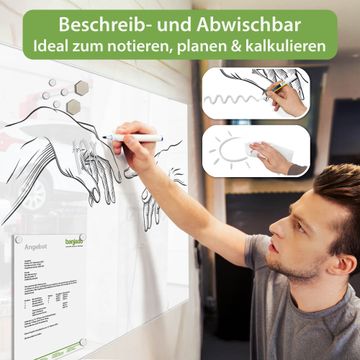 Gefertigt aus gehärtetem Sicherheitsglas mit einer magnetischen Rückwand aus Stahl überzeugt diese Magnettafel durch Stabilität und Langlebigkeit. Die Oberfläche bleibt dauerhaft brillant und pflegeleicht, selbst bei täglicher Nutzung.