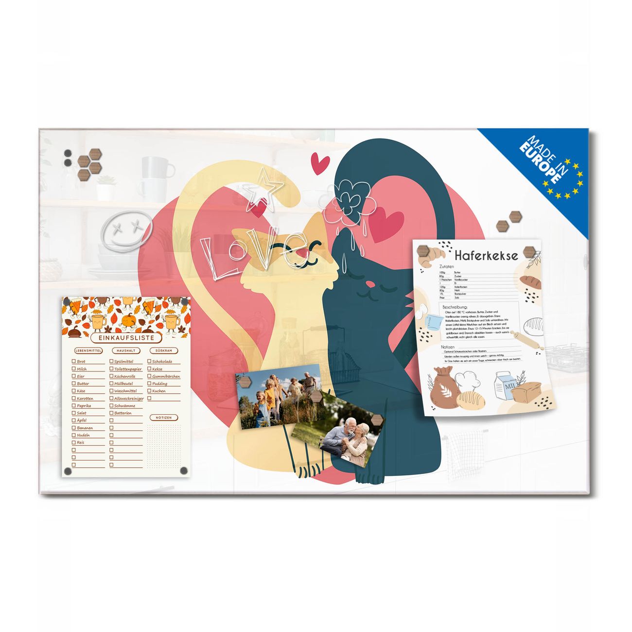 Glas Magnettafel im Querformat Motiv Verliebte Katzen