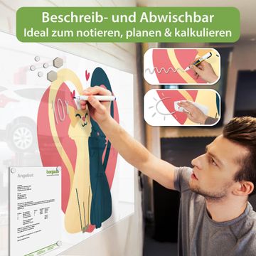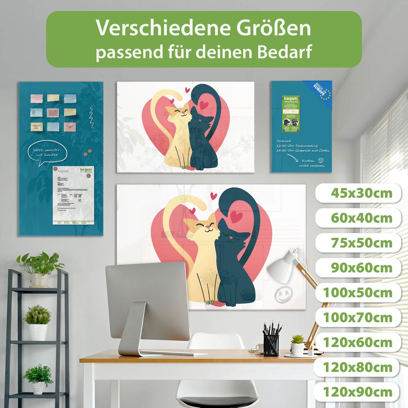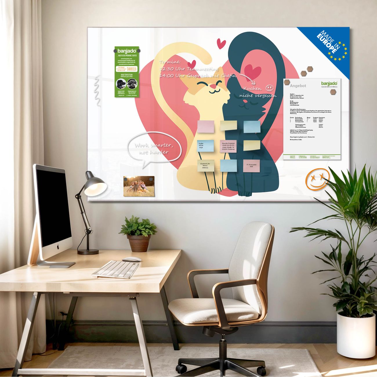 Die banjado Glas Magnettafel mit dem Motiv Motiv Verliebte Katzen verbindet Funktionalität mit Stil. Sie ersetzt das Zettelchaos durch klare Strukturen und bringt dabei eine warme, natürliche Atmosphäre in Ihr Zuhause. Ob im Büro, in der Küche oder im Eingangsbereich - dieses Design-Board zieht Blicke an und sorgt für Ordnung mit Charakter.