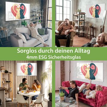 Material: 4mm Sicherheitsglas mit Metallrückwand Eigenschaften: beschreibbar, magnetisch, kratzfest Maße: 75x50x0,6cm, 5,63kg schwer Motiv Nummer 13437 Verliebte Katzen Zubehör: inklusive 4 Neodym-Magnete