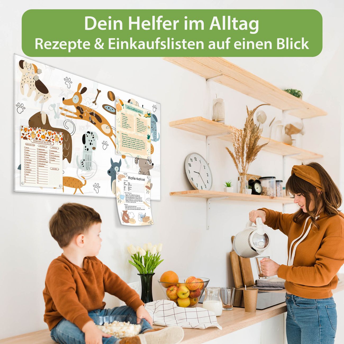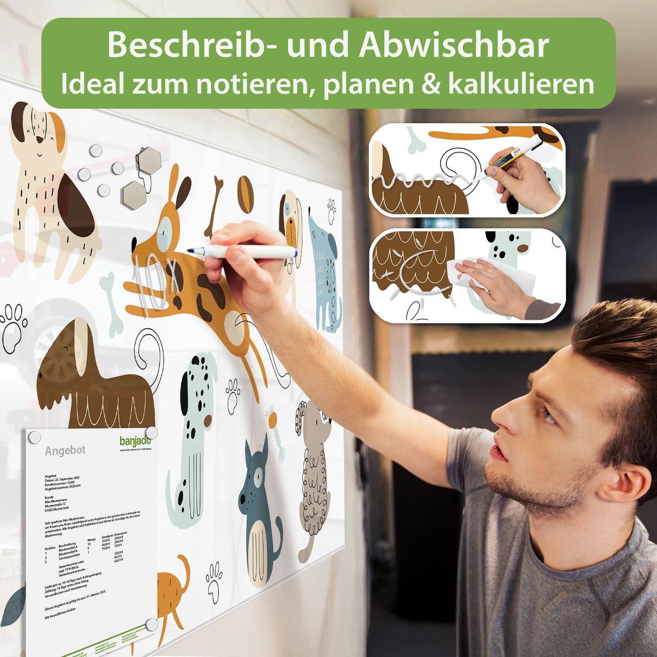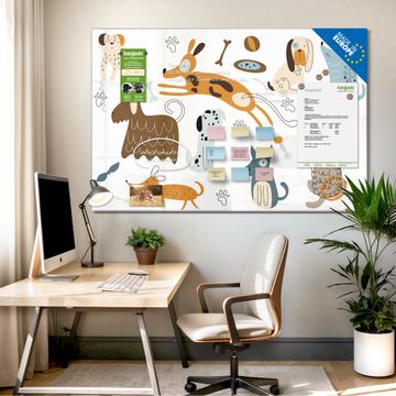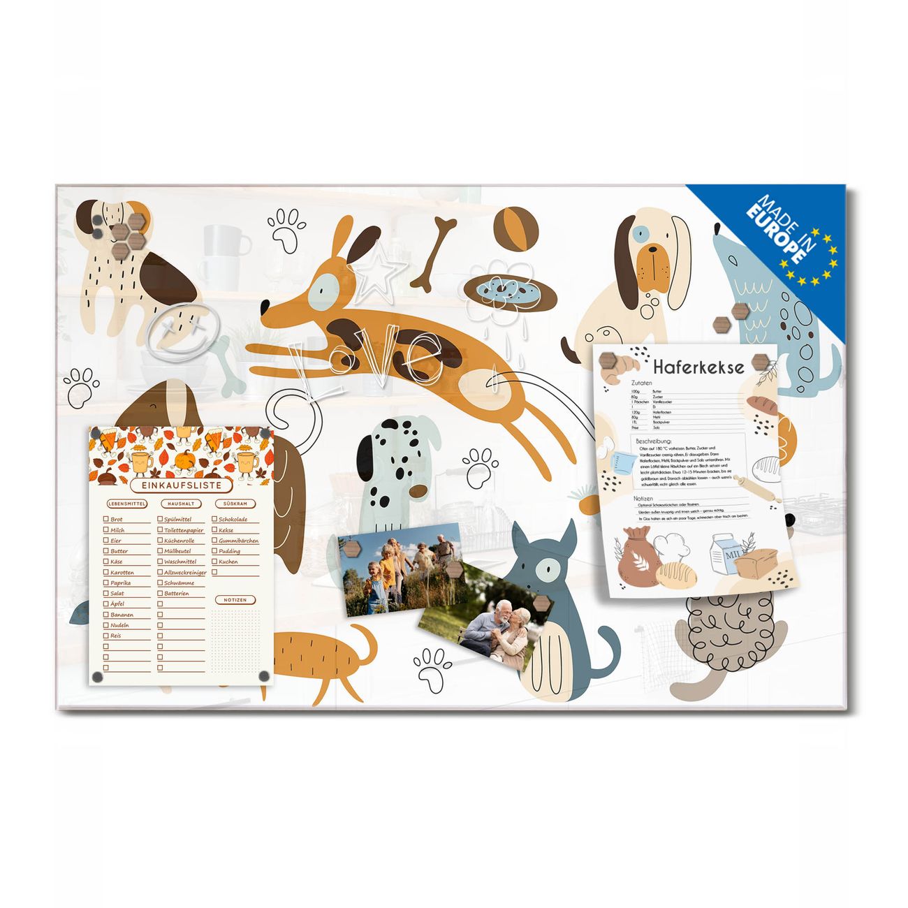 Glas Magnettafel im Querformat Motiv Verspielte Hunde-Illustration