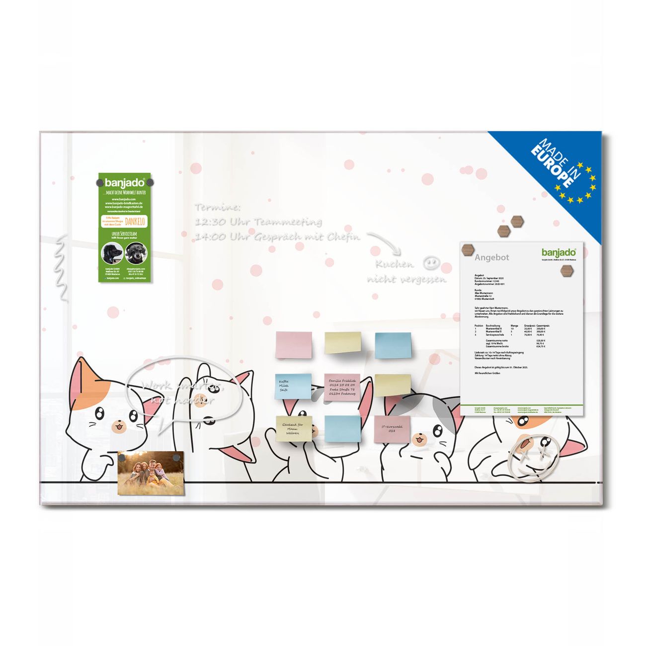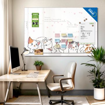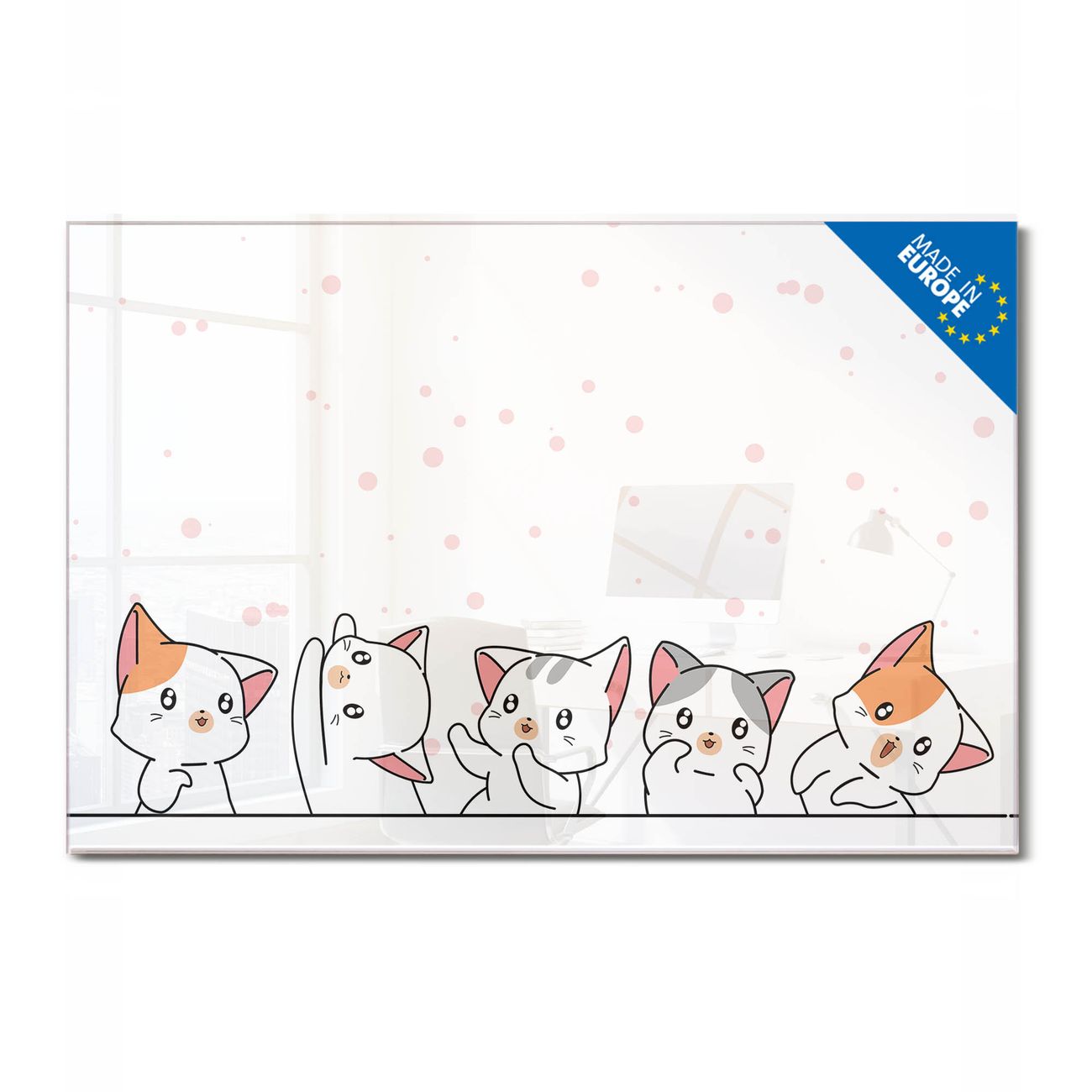 Material: 4mm Sicherheitsglas mit Metallrückwand Eigenschaften: beschreibbar, magnetisch, kratzfest Maße: 120x80x0,6cm, 14,40kg schwer Motiv Nummer 13253 Verspielte Kätzchen Zubehör: inklusive 4 Neodym-Magnete