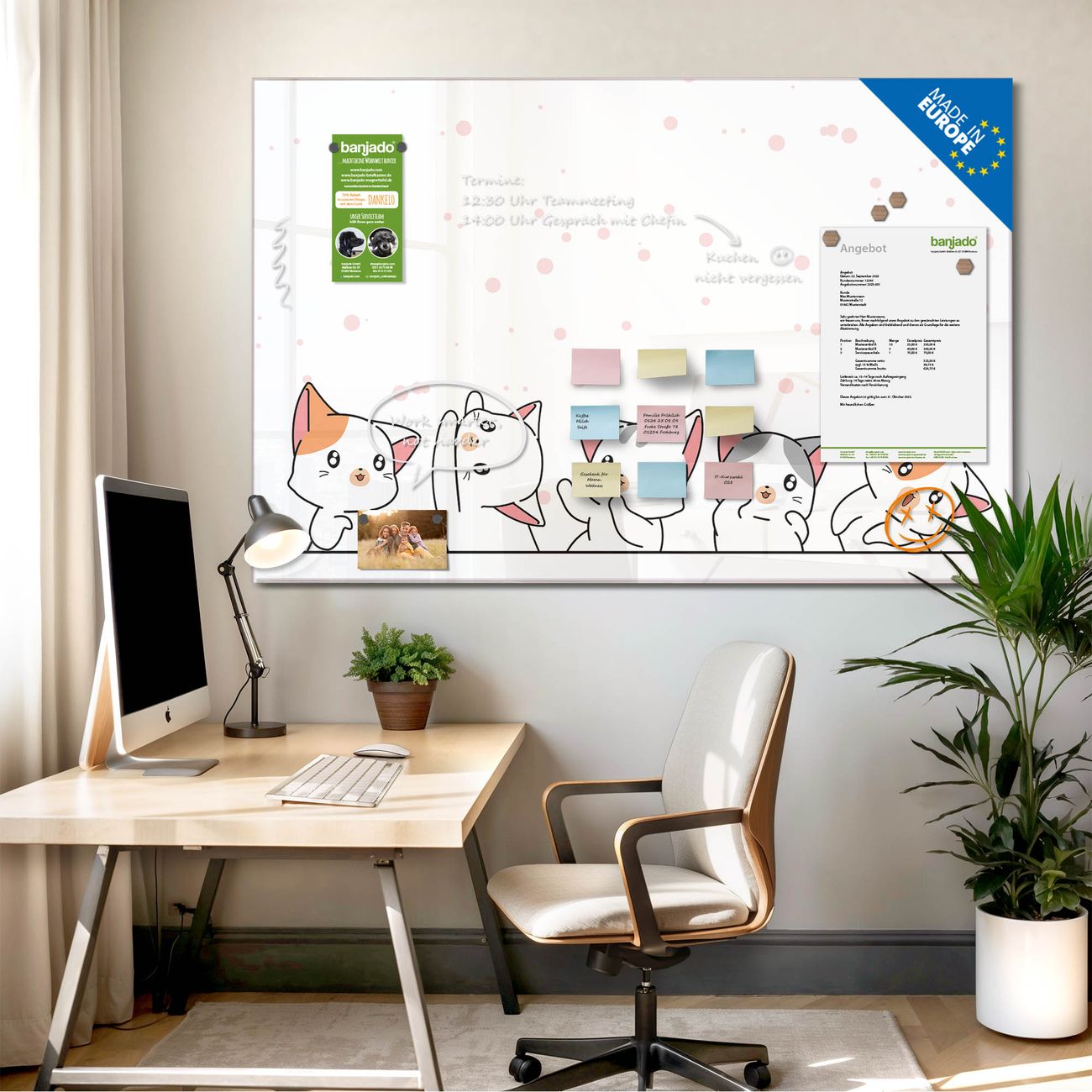 Die banjado Glas Magnettafel mit dem Motiv Motiv Verspielte Kätzchen verbindet Funktionalität mit Stil. Sie ersetzt das Zettelchaos durch klare Strukturen und bringt dabei eine warme, natürliche Atmosphäre in Ihr Zuhause. Ob im Büro, in der Küche oder im Eingangsbereich - dieses Design-Board zieht Blicke an und sorgt für Ordnung mit Charakter.