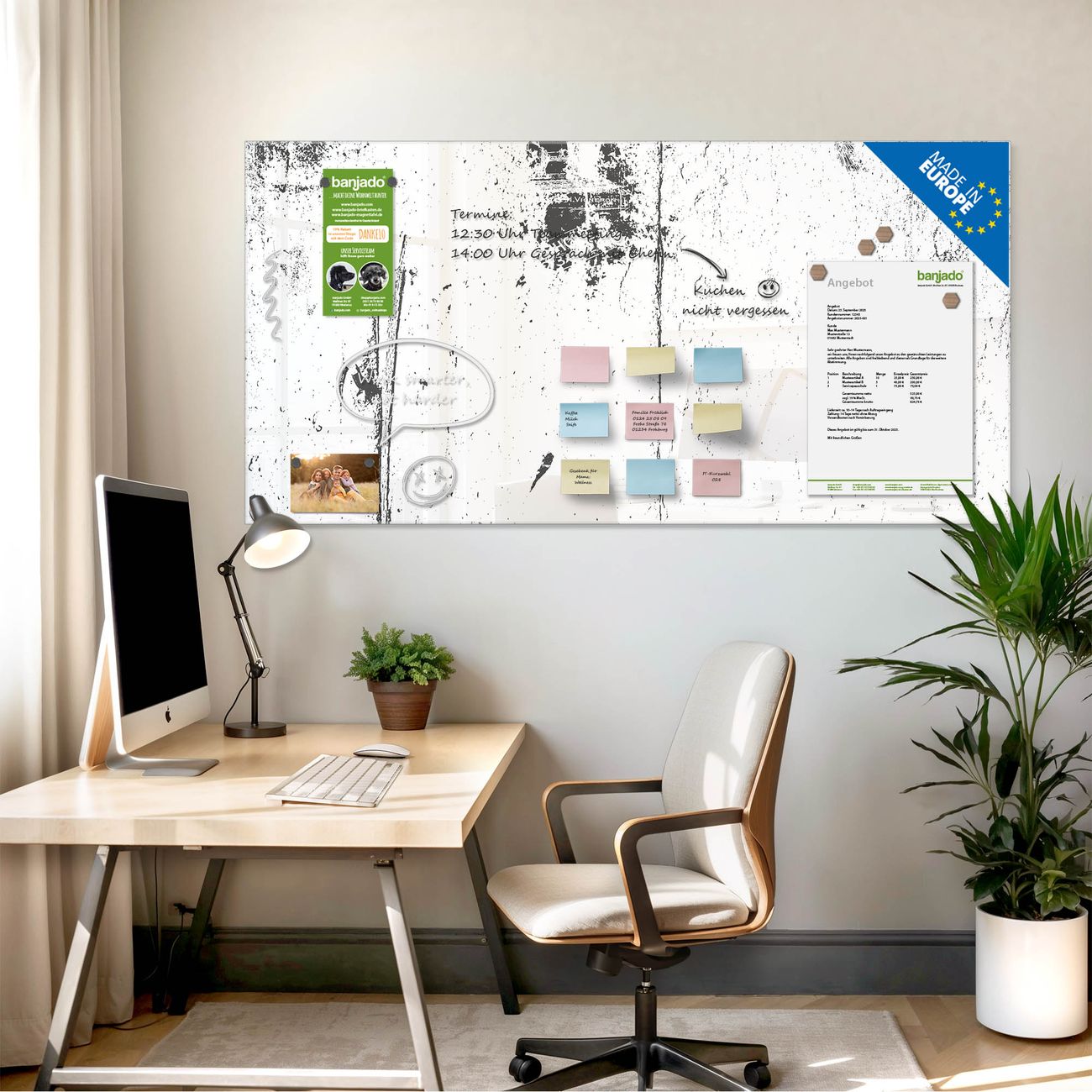Die banjado Glas Magnettafel mit dem Motiv Motiv Verwitterte Wand verbindet Funktionalität mit Stil. Sie ersetzt das Zettelchaos durch klare Strukturen und bringt dabei eine warme, natürliche Atmosphäre in Ihr Zuhause. Ob im Büro, in der Küche oder im Eingangsbereich - dieses Design-Board zieht Blicke an und sorgt für Ordnung mit Charakter.