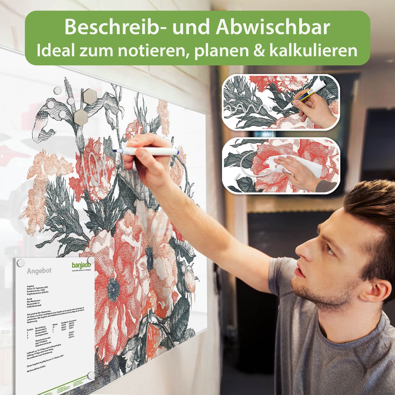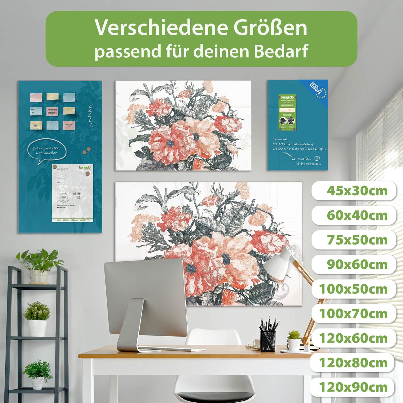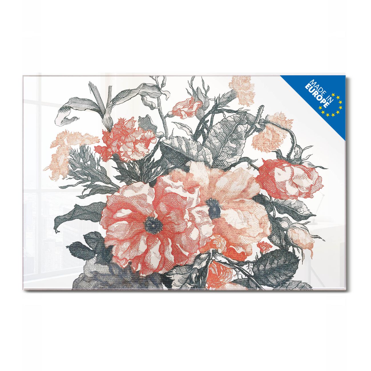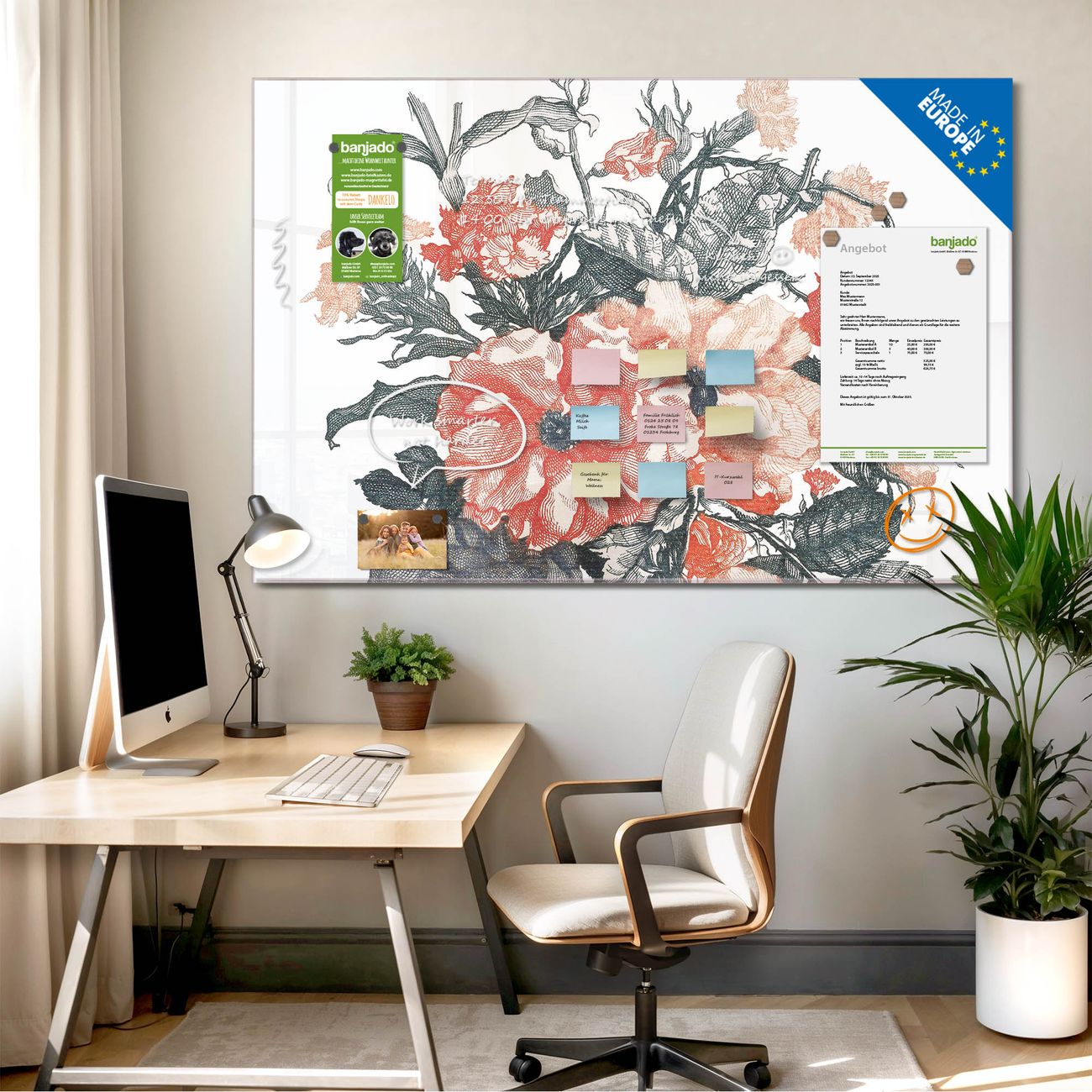 Glas Magnettafel im Querformat Motiv Vintage Blumenstrauß