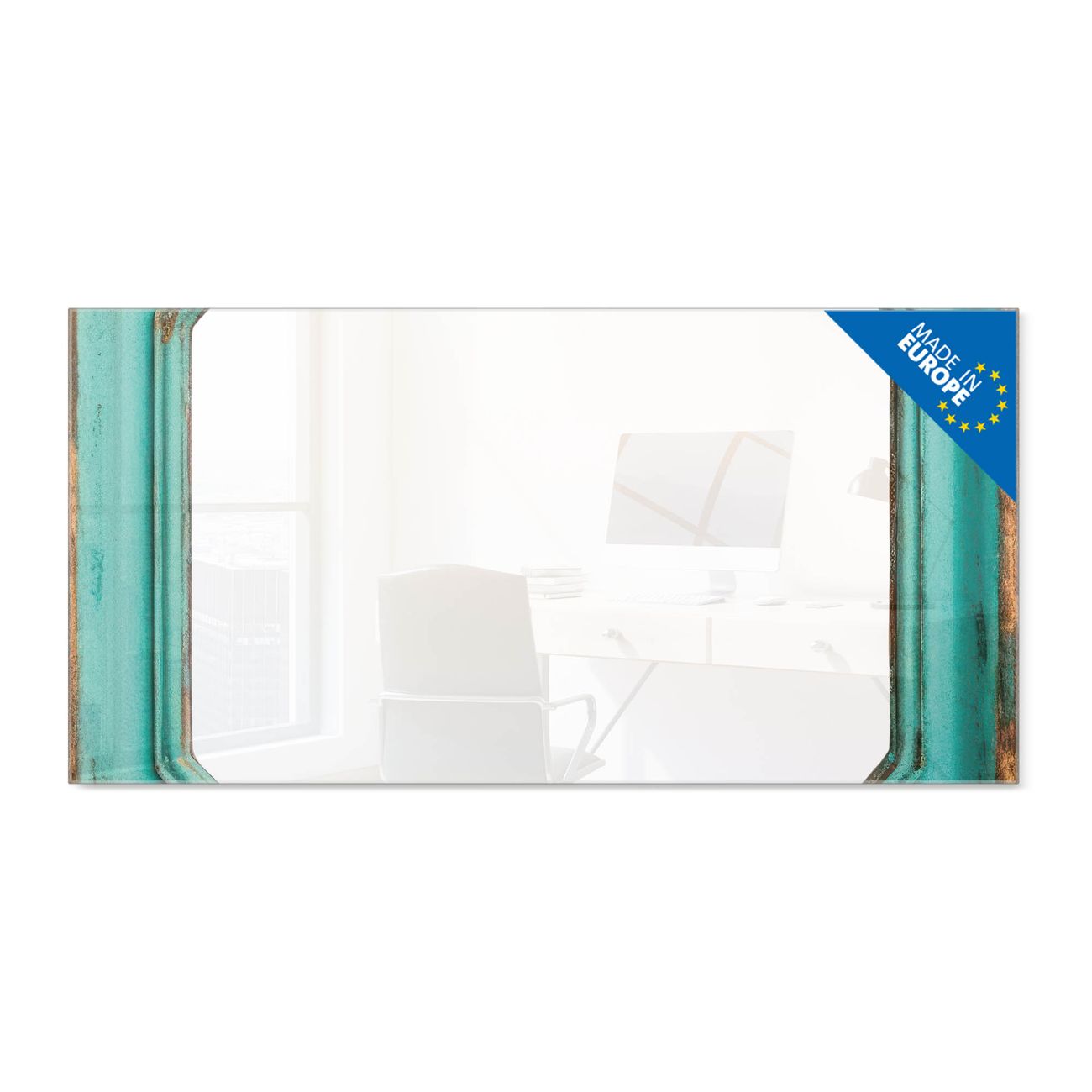 Material: 4mm Sicherheitsglas mit Metallrückwand Eigenschaften: beschreibbar, magnetisch, kratzfest Maße: 100x50x0,6cm, 7,50kg schwer Motiv Nummer 13557 Vintage Metallrahmen Zubehör: inklusive 4 Neodym-Magnete