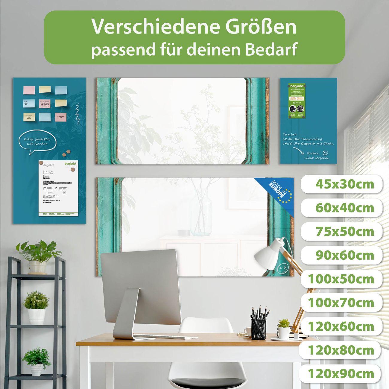 Jede Glas Magnettafel wird in unserer Werkstatt von Hand gefertigt und sorgfältig geprüft. So erhalten Sie ein echtes Qualitätsprodukt, das Funktion und Ästhetik perfekt vereint.?? Warum banjado?