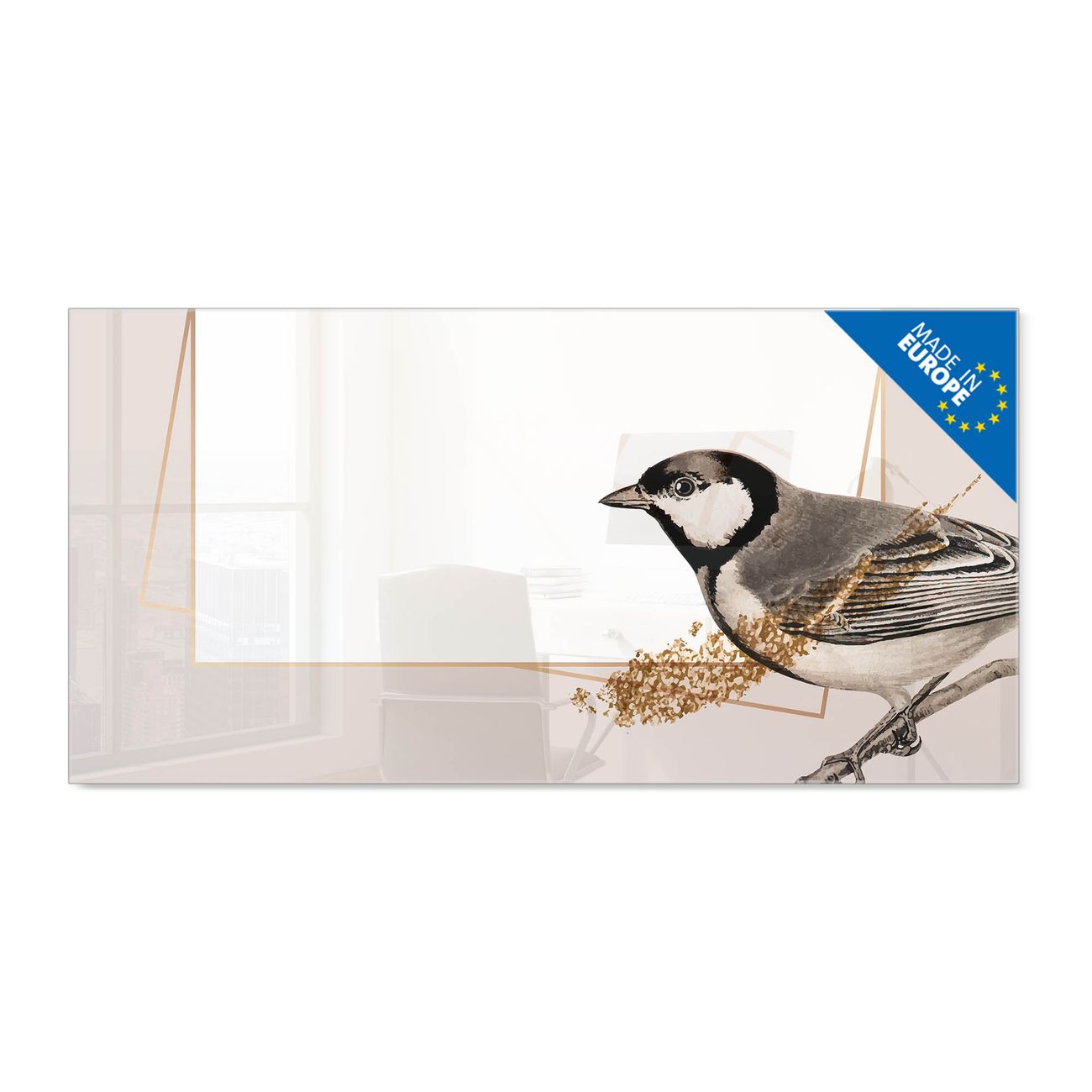 Glas Magnettafel im Querformat Motiv Vogel auf Zweig 2