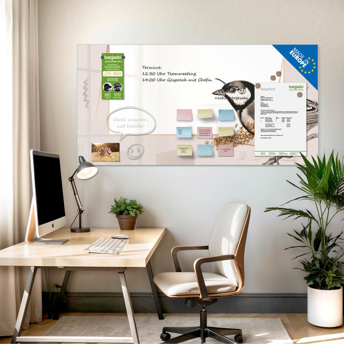 Jede Glas Magnettafel wird in unserer Werkstatt von Hand gefertigt und sorgfältig geprüft. So erhalten Sie ein echtes Qualitätsprodukt, das Funktion und Ästhetik perfekt vereint.?? Warum banjado?
