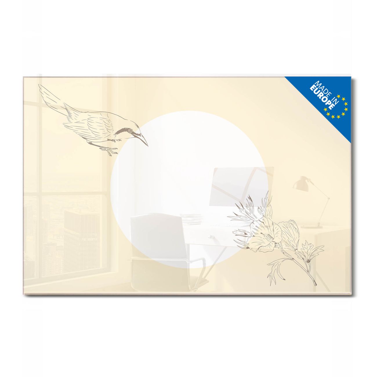 Glas Magnettafel im Querformat Motiv Vogel und Blüte