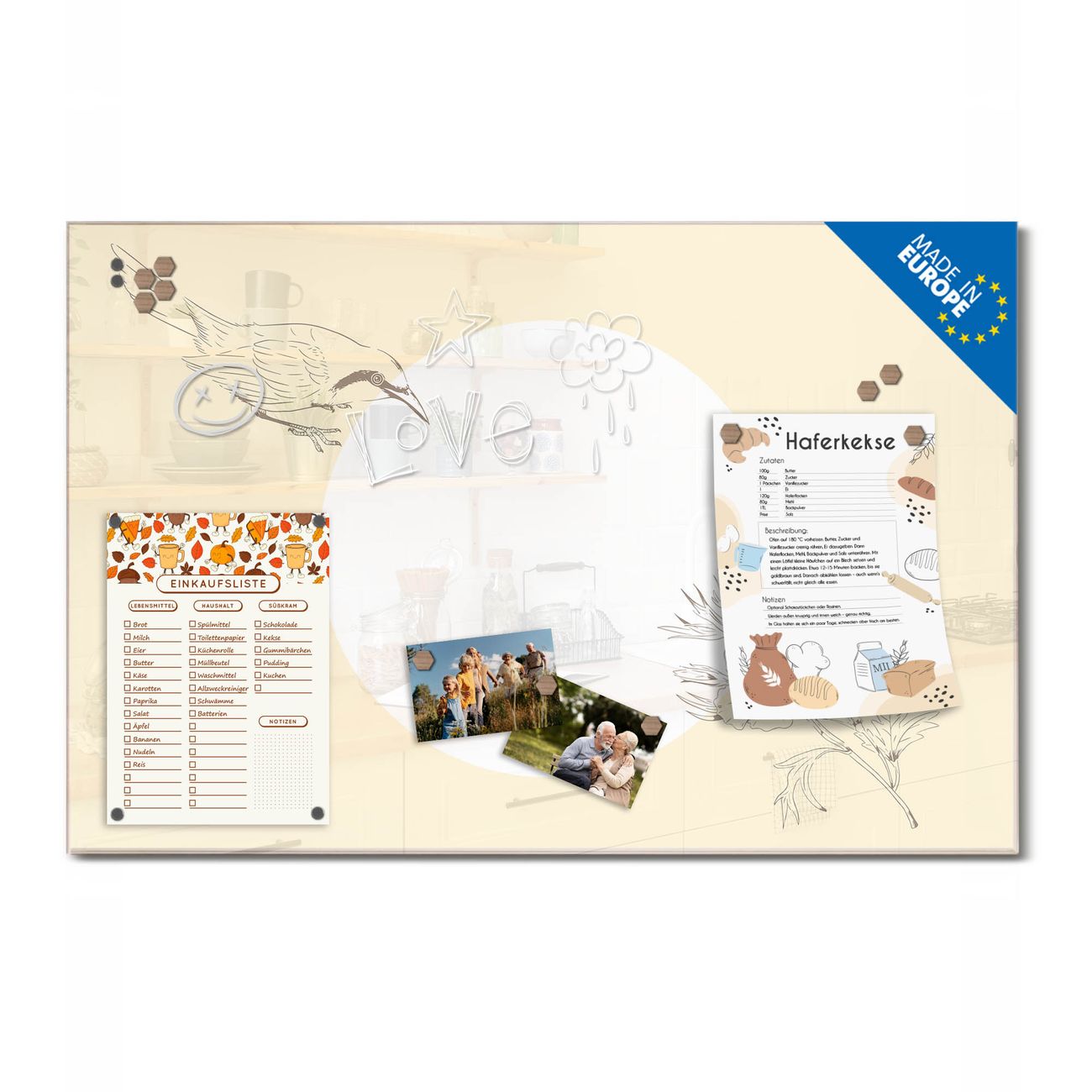 Auf der glatten Glasoberfläche lassen sich Termine, Rezepte oder Notizen ganz einfach mit Kreidestiften festhalten und rückstandslos entfernen. Starke Neodym-Magnete halten Ihre wichtigsten Erinnerungen sicher an Ort und Stelle. So entsteht Ihre ganz persönliche Ideenwand - jeden Tag neu.