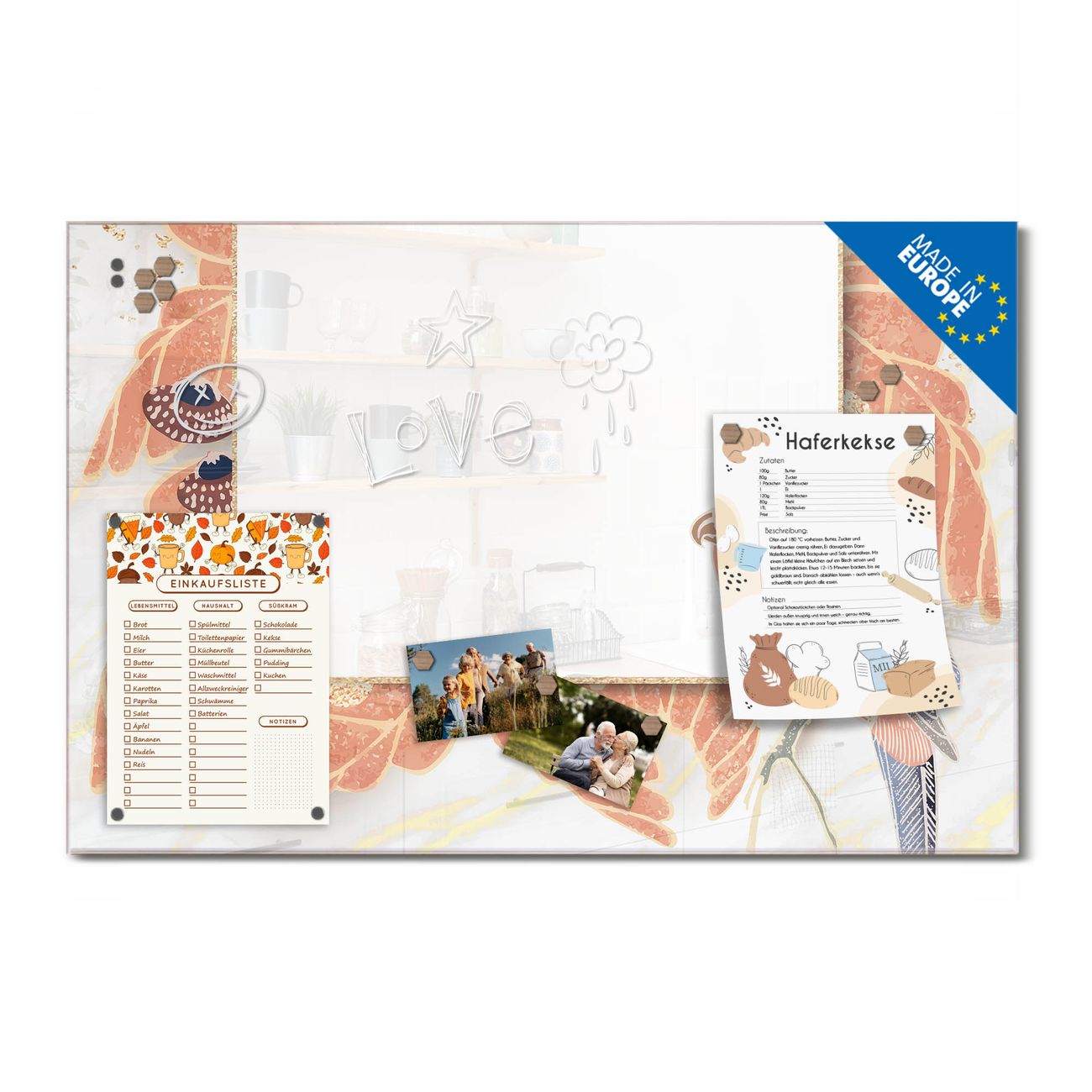 Auf der glatten Glasoberfläche lassen sich Termine, Rezepte oder Notizen ganz einfach mit Kreidestiften festhalten und rückstandslos entfernen. Starke Neodym-Magnete halten Ihre wichtigsten Erinnerungen sicher an Ort und Stelle. So entsteht Ihre ganz persönliche Ideenwand - jeden Tag neu.