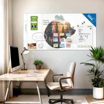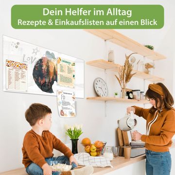 Auf der glatten Glasoberfläche lassen sich Termine, Rezepte oder Notizen ganz einfach mit Kreidestiften festhalten und rückstandslos entfernen. Starke Neodym-Magnete halten Ihre wichtigsten Erinnerungen sicher an Ort und Stelle. So entsteht Ihre ganz persönliche Ideenwand - jeden Tag neu.