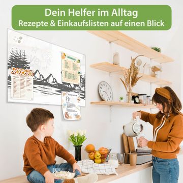 Auf der glatten Glasoberfläche lassen sich Termine, Rezepte oder Notizen ganz einfach mit Kreidestiften festhalten und rückstandslos entfernen. Starke Neodym-Magnete halten Ihre wichtigsten Erinnerungen sicher an Ort und Stelle. So entsteht Ihre ganz persönliche Ideenwand - jeden Tag neu.