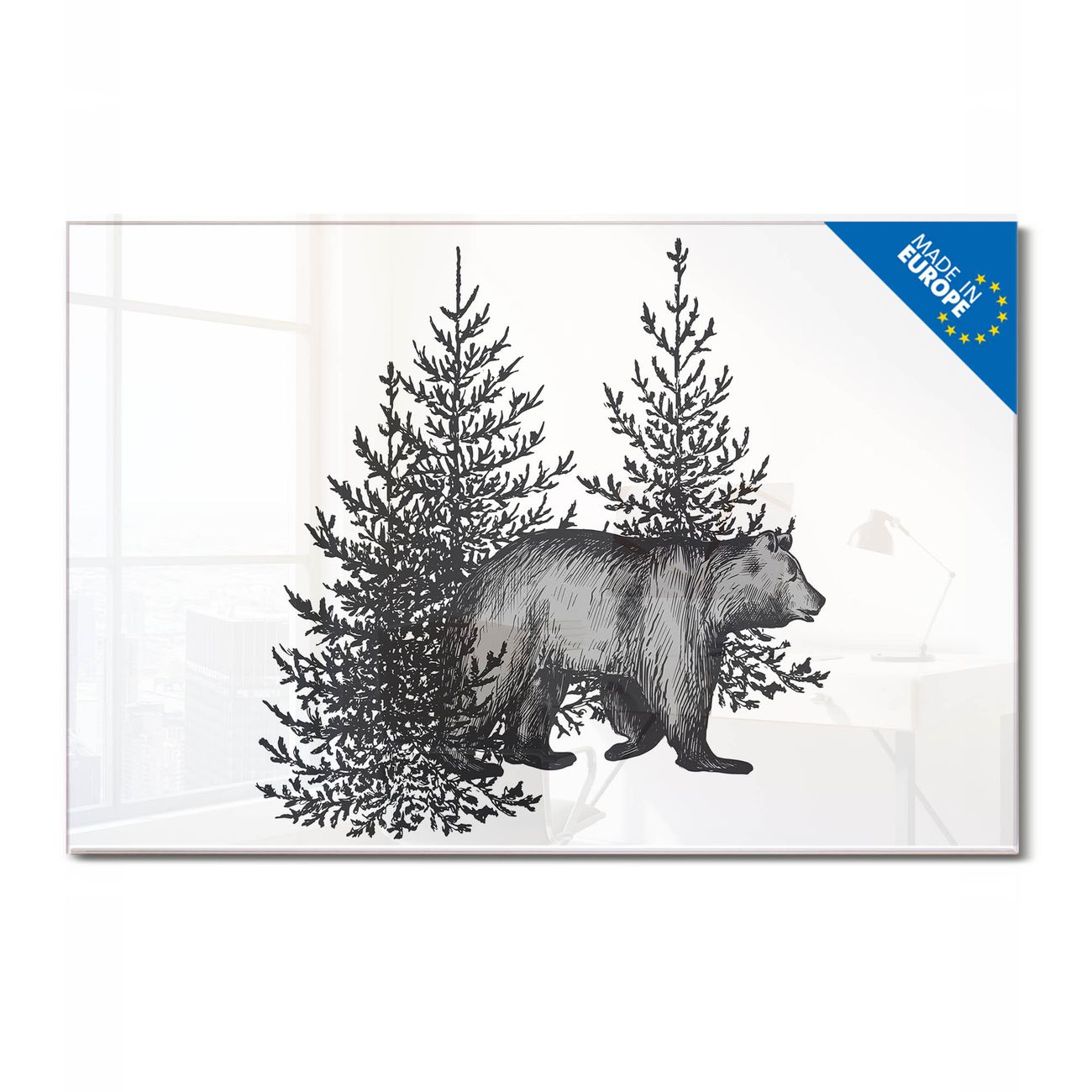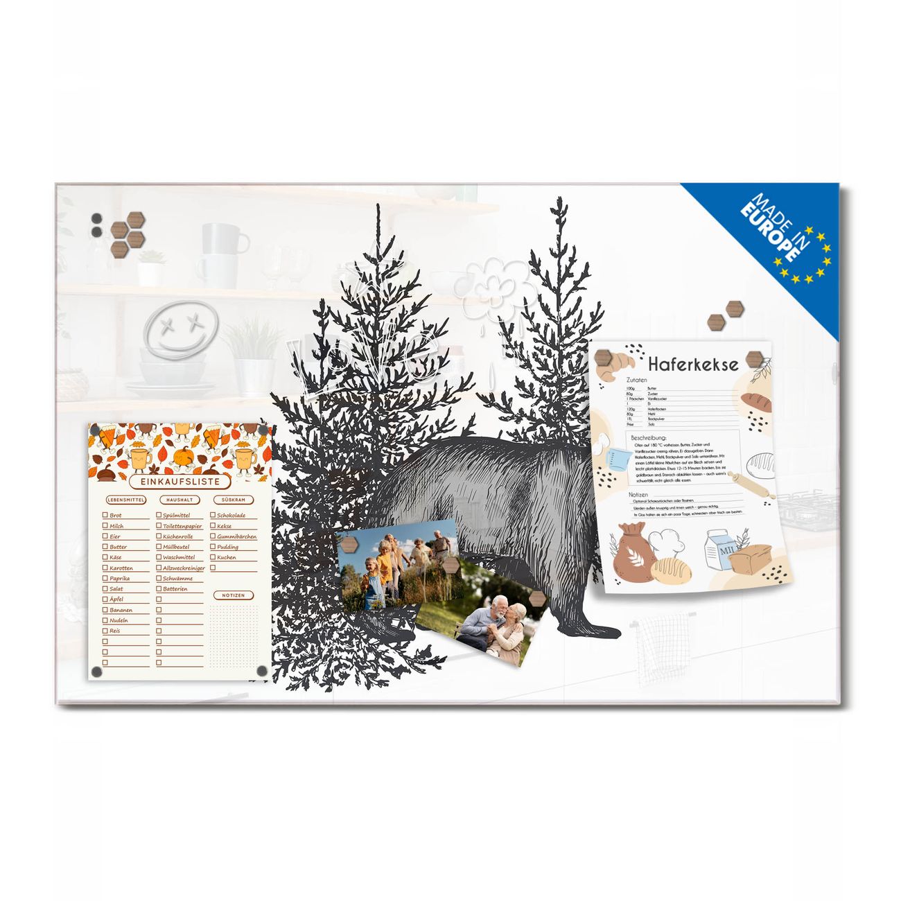 Glas Magnettafel im Querformat Motiv Waldspaziergang mit Bär