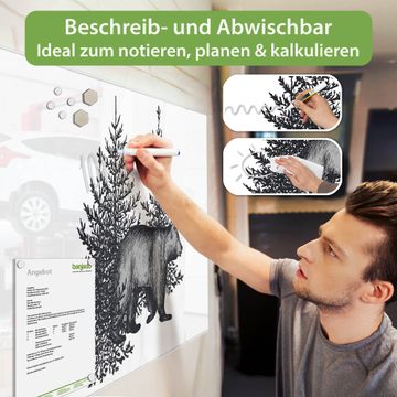 Gefertigt aus gehärtetem Sicherheitsglas mit einer magnetischen Rückwand aus Stahl überzeugt diese Magnettafel durch Stabilität und Langlebigkeit. Die Oberfläche bleibt dauerhaft brillant und pflegeleicht, selbst bei täglicher Nutzung.