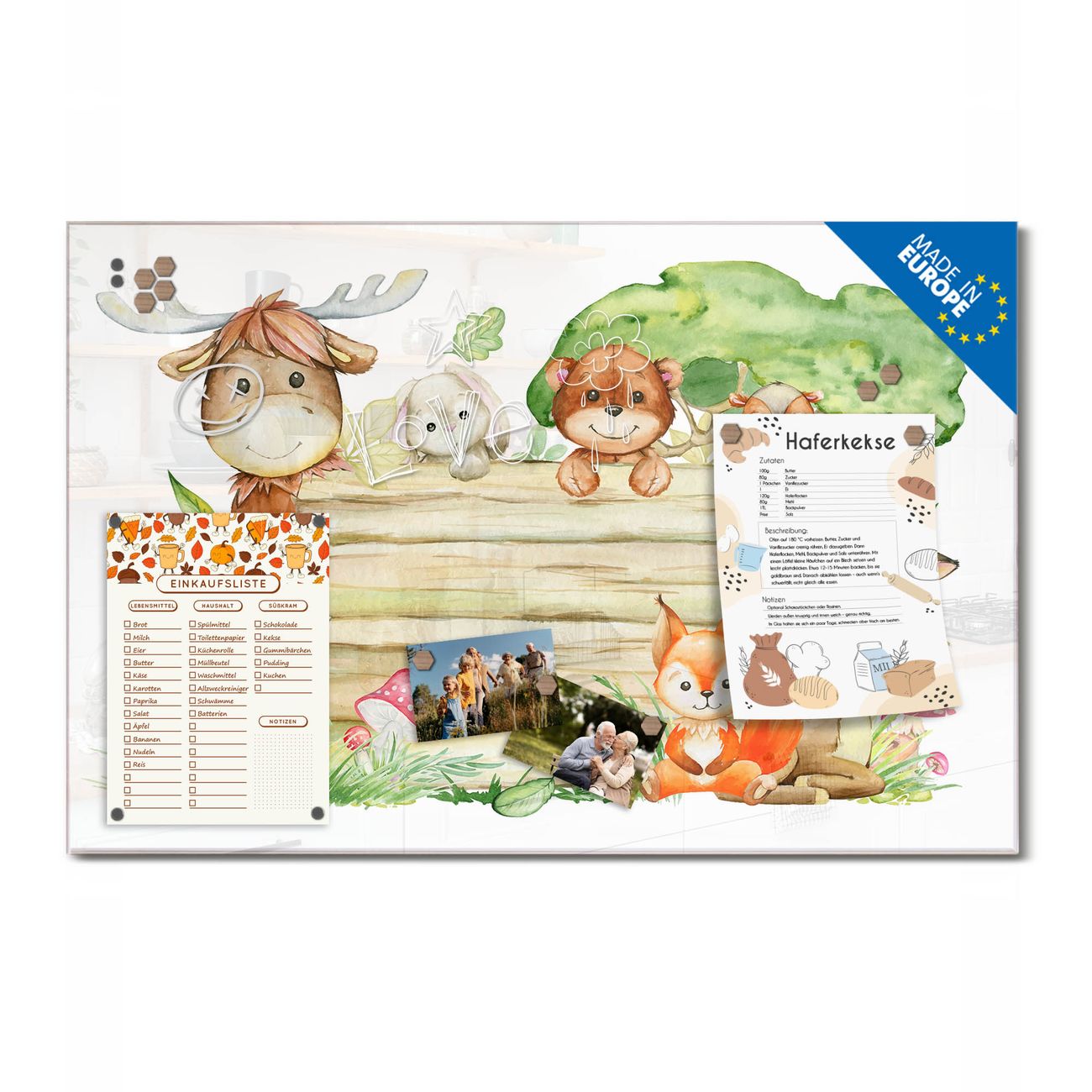 Glas Magnettafel im Querformat Motiv Waldtiere Abenteuer