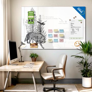 Die banjado Glas Magnettafel mit dem Motiv Motiv Waldtiere in Schwarz-Weiß verbindet Funktionalität mit Stil. Sie ersetzt das Zettelchaos durch klare Strukturen und bringt dabei eine warme, natürliche Atmosphäre in Ihr Zuhause. Ob im Büro, in der Küche oder im Eingangsbereich - dieses Design-Board zieht Blicke an und sorgt für Ordnung mit Charakter.