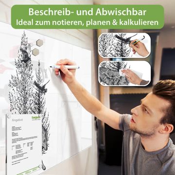 Gefertigt aus gehärtetem Sicherheitsglas mit einer magnetischen Rückwand aus Stahl überzeugt diese Magnettafel durch Stabilität und Langlebigkeit. Die Oberfläche bleibt dauerhaft brillant und pflegeleicht, selbst bei täglicher Nutzung.