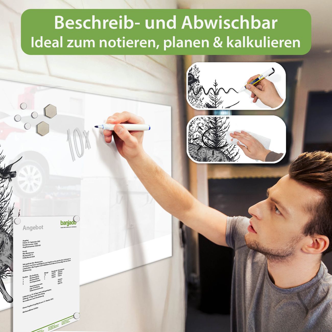 Bitte beachten Sie, dass ausschliessliche spezielle Magnete an der Glastafel haften. Wir empfehlen banjado Neodym Magnete, diese sind durch uns auf Wirksamkeit geprüft.