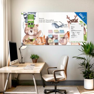 Die banjado Glas Magnettafel mit dem Motiv Motiv Waldtierfreunde 2 verbindet Funktionalität mit Stil. Sie ersetzt das Zettelchaos durch klare Strukturen und bringt dabei eine warme, natürliche Atmosphäre in Ihr Zuhause. Ob im Büro, in der Küche oder im Eingangsbereich - dieses Design-Board zieht Blicke an und sorgt für Ordnung mit Charakter.