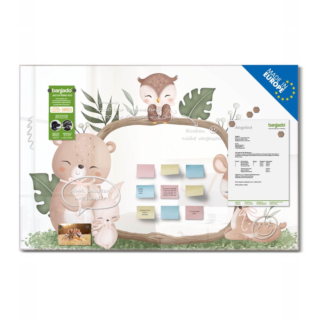 Glas Magnettafel im Querformat Motiv Waldtierfreunde