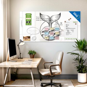 Die banjado Glas Magnettafel mit dem Motiv Motiv Walflosse und Welle 2 verbindet Funktionalität mit Stil. Sie ersetzt das Zettelchaos durch klare Strukturen und bringt dabei eine warme, natürliche Atmosphäre in Ihr Zuhause. Ob im Büro, in der Küche oder im Eingangsbereich - dieses Design-Board zieht Blicke an und sorgt für Ordnung mit Charakter.