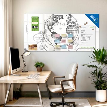 Die banjado Glas Magnettafel mit dem Motiv Motiv Welt in den Händen verbindet Funktionalität mit Stil. Sie ersetzt das Zettelchaos durch klare Strukturen und bringt dabei eine warme, natürliche Atmosphäre in Ihr Zuhause. Ob im Büro, in der Küche oder im Eingangsbereich - dieses Design-Board zieht Blicke an und sorgt für Ordnung mit Charakter.
