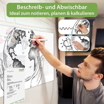 Auf der glatten Glasoberfläche lassen sich Termine, Rezepte oder Notizen ganz einfach mit Kreidestiften festhalten und rückstandslos entfernen. Starke Neodym-Magnete halten Ihre wichtigsten Erinnerungen sicher an Ort und Stelle. So entsteht Ihre ganz persönliche Ideenwand - jeden Tag neu.