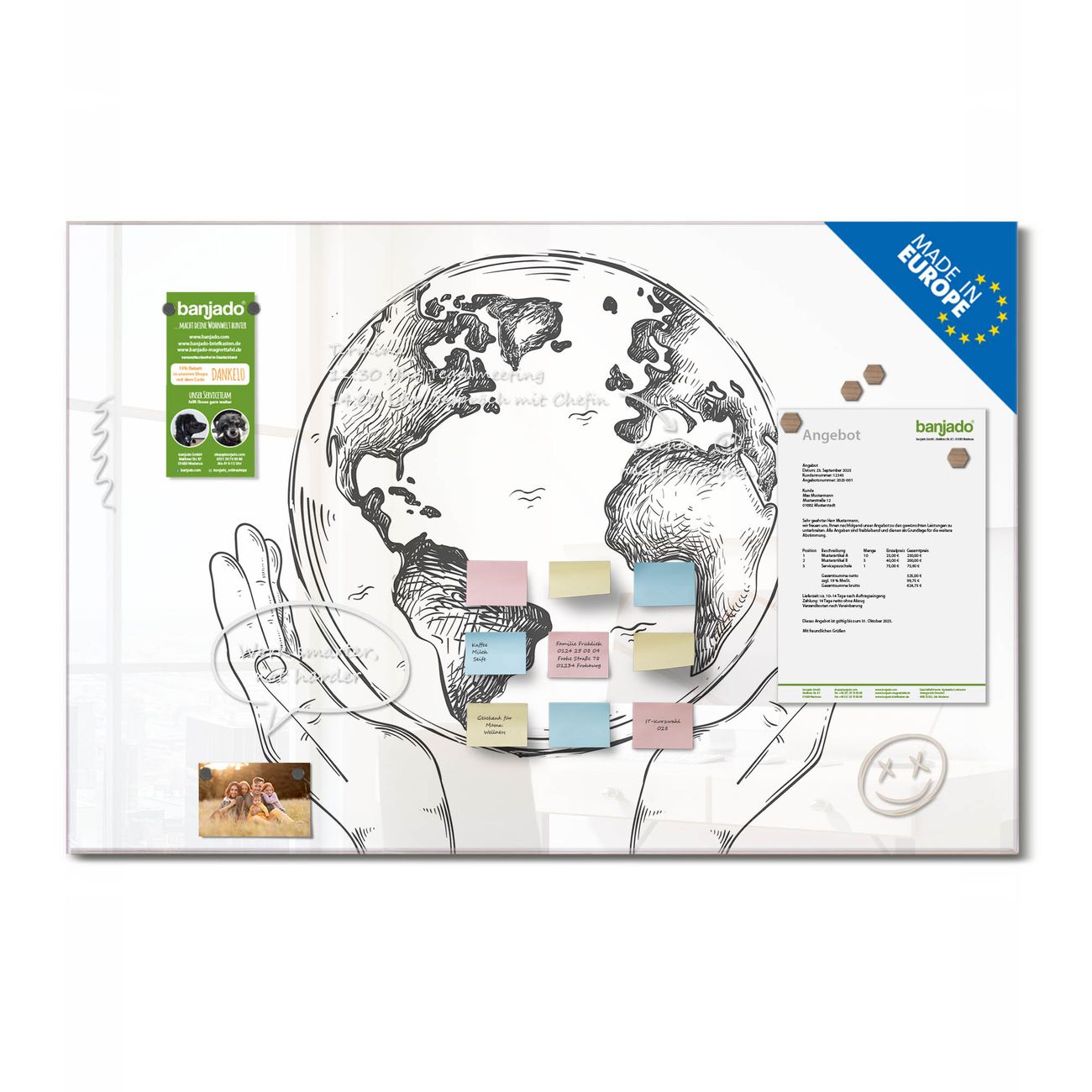 Die banjado Glas Magnettafel mit dem Motiv Motiv Welt in den Händen verbindet Funktionalität mit Stil. Sie ersetzt das Zettelchaos durch klare Strukturen und bringt dabei eine warme, natürliche Atmosphäre in Ihr Zuhause. Ob im Büro, in der Küche oder im Eingangsbereich - dieses Design-Board zieht Blicke an und sorgt für Ordnung mit Charakter.