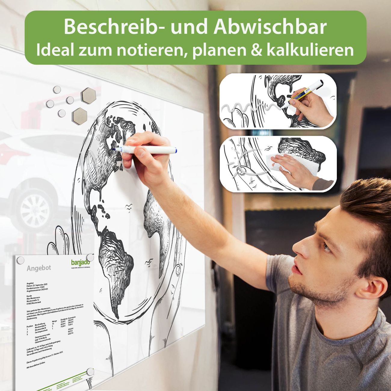 Jede Glas Magnettafel wird in unserer Werkstatt von Hand gefertigt und sorgfältig geprüft. So erhalten Sie ein echtes Qualitätsprodukt, das Funktion und Ästhetik perfekt vereint.?? Warum banjado?