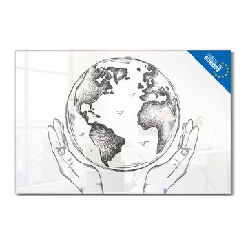 Glas Magnettafel im Querformat Motiv Welt in den Händen