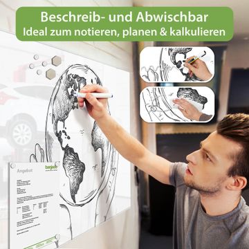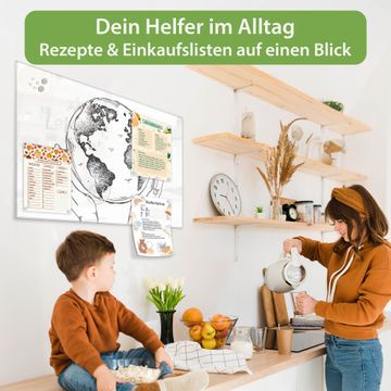 Auf der glatten Glasoberfläche lassen sich Termine, Rezepte oder Notizen ganz einfach mit Kreidestiften festhalten und rückstandslos entfernen. Starke Neodym-Magnete halten Ihre wichtigsten Erinnerungen sicher an Ort und Stelle. So entsteht Ihre ganz persönliche Ideenwand - jeden Tag neu.