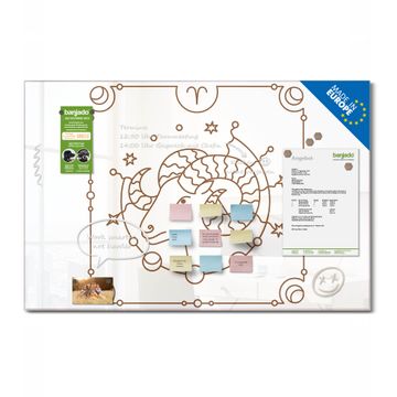 Material: 4mm Sicherheitsglas mit Metallrückwand Eigenschaften: beschreibbar, magnetisch, kratzfest Maße: 120x80x0,6cm, 14,40kg schwer Motiv Nummer 13184 Widder Sternzeichen Illustration Zubehör: inklusive 4 Neodym-Magnete