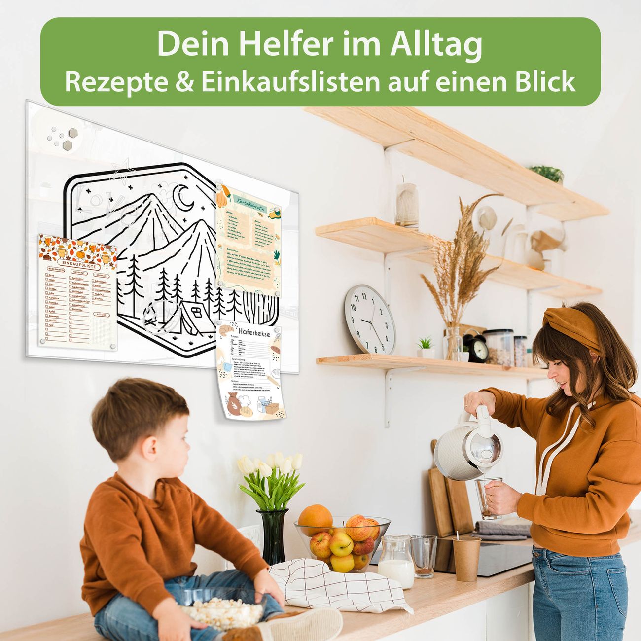 Ein Stück Design, das Ihren Alltag organisiert. Schreiben, heften, inspirieren - alles an einem Ort. Qualität, die man spürt. Montage leicht gemacht. Handwerk mit Herz - veredelt in Sachsen. Einzigartiges Design mit Motiv Motiv Wilde Naturlandschaft Beschreibbare Glasoberfläche, leicht zu reinigen Starke Magnetkraft durch Stahlrückwand Inklusive 4 Neodym-Magneten Flexible Montageoptionen Handveredelt in Sachsen - Qualität, die bleibt