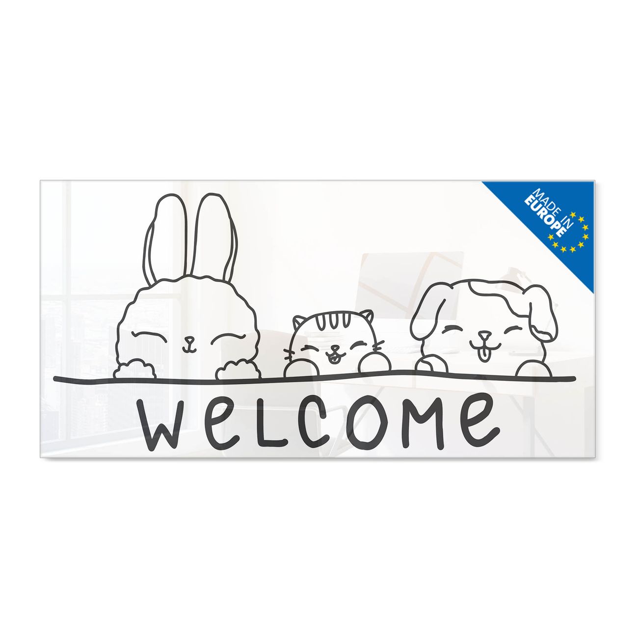 Glas Magnettafel im Querformat Motiv Willkommensfreunde