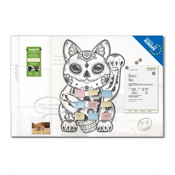 Material: 4mm Sicherheitsglas mit Metallrückwand Eigenschaften: beschreibbar, magnetisch, kratzfest Maße: 120x80x0,6cm, 14,40kg schwer Motiv Nummer 13045 Winkekatze 2 Zubehör: inklusive 4 Neodym-Magnete