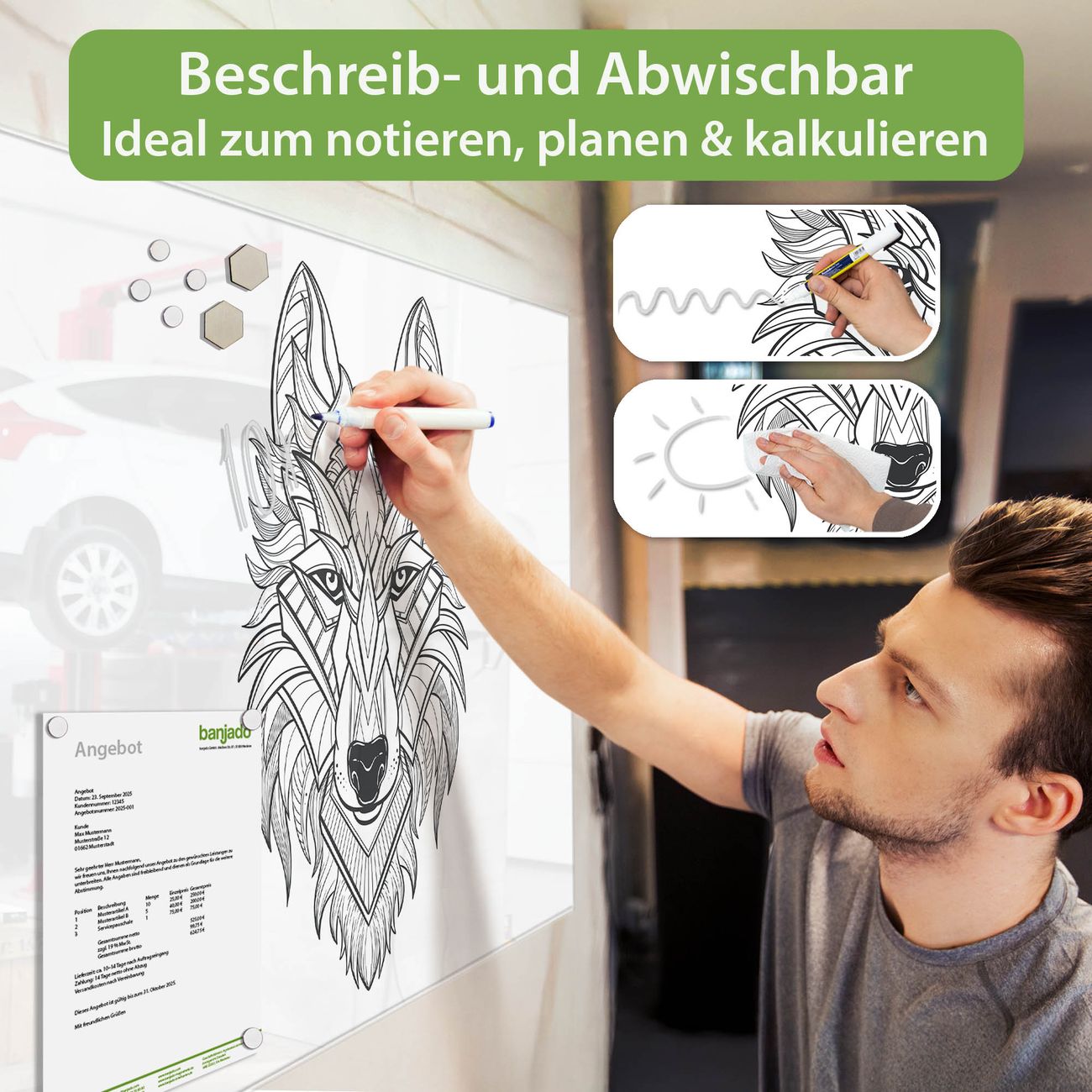 Glas Magnettafel im Querformat Motiv Wolf 2