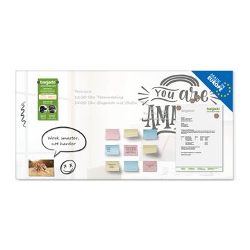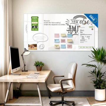 Auf der glatten Glasoberfläche lassen sich Termine, Rezepte oder Notizen ganz einfach mit Kreidestiften festhalten und rückstandslos entfernen. Starke Neodym-Magnete halten Ihre wichtigsten Erinnerungen sicher an Ort und Stelle. So entsteht Ihre ganz persönliche Ideenwand - jeden Tag neu.